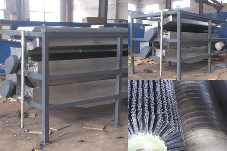 其原理为物料经料仓通过导料盘进入磁场区,磁性矿物被吸附在磁辊表面旋转到达精矿区,毛刷将吸附在磁辊表面上的磁性矿刷脱,在高压水的喷射下落到精矿斗里,部分未被吸附的磁性矿粒、非磁性矿粒和磁性较弱的矿粒进入到下一步再选。